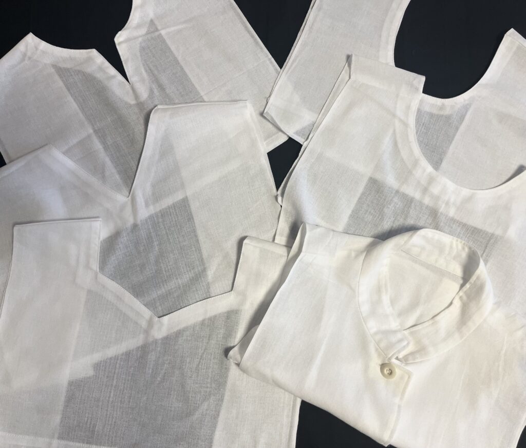 17種類のいろいろな襟の見本をあてて似合う襟の形、開き具合をご提案いたします。骨格に合わせて着やせ効果ありです。